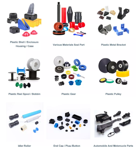 Material: Rubber, NR, NBR, Neoprene, EPDM, Silicone, FKM, BR/SBR, PU, TPE, TPV, TPU,etc.Plastic: PA, ABS, POM, PP, PE, LDPE, HDPE, UHMWPE, PTFE, PVC, PC, PS, etc.