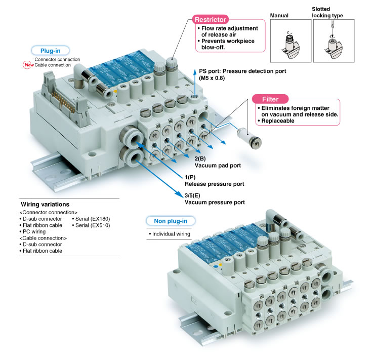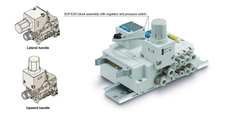 (Consult SMC for details.)Enables 2-system pressure switching where the 1(P) port and 3/5(E) are set to different positive pressures.