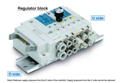 Pressure supplied from the D side is used to reduce pressure in the manifold.