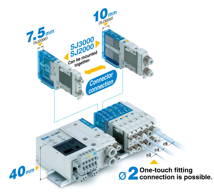 ■Takes uo minimal space with a body width of 7.5mm (SJ2000)or 10mm (SJ3000).