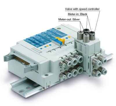 As a speed controller is built-into this valve, the cylinder speed can be adjusted on the valve side.