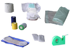 Dispensing solutions for the manufacturing of products like sanitary napkins, baby diapers, tissues or medical articles are provided.