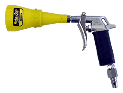 Intermittent shock adversely extensively by high-speed fluid jet exits are made of soft urethane cover out from behind. Effect than conventional air gun pressed in air, an air strike by Patagan effect, saving air consumption, processing time allows.