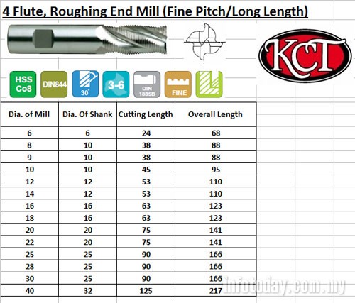 4 Flute, Roughing End Mill ( Fine Pitch / Long Legth)