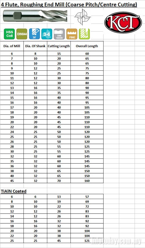 4 Flute, Roughing End Mill ( Coarse Pitch / Centre Cutting)