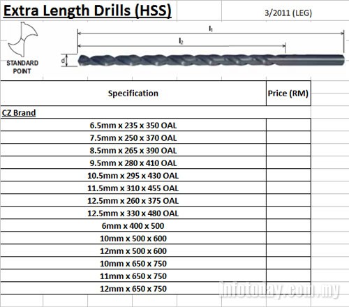 Extra Length Drills (HSS)