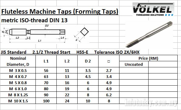 Fluteless Machine Taps (Forming Taps)