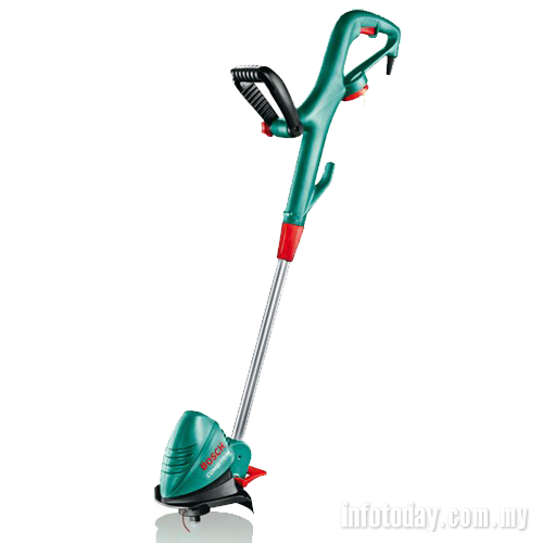 - Angle adjustment on trimmer shaft for easy trimming under bushes and benches.
