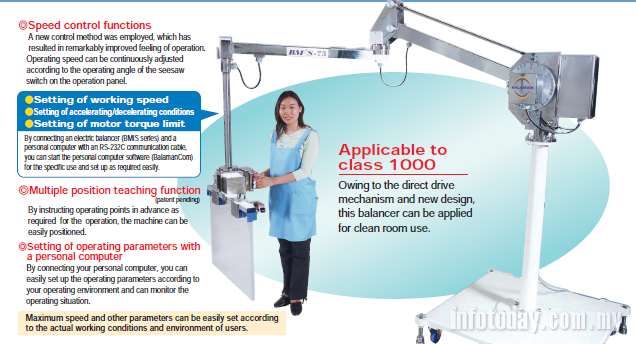 - This type of balancer can be installed in sites under low ceiling, still securing a wide working range.