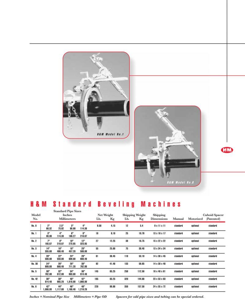 How economically? Using H & M Pipe Beveling Machines saves weld prep time and money compared to hand cutting. Anyone can make accurate cuts and bevels with just a few minutes of instruction. Easy-to-follow manuals are provided with each machine.