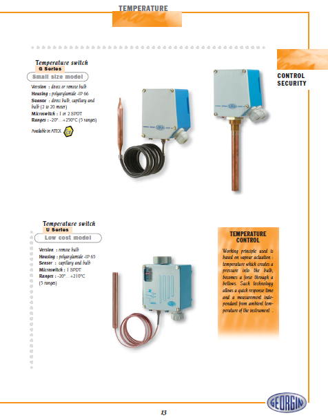 GEORGIN TEMPERATURE SENSOR / TEMPERATURE TRANSMITTER / TRANSMITTER / TEMPERATURE SWITCH