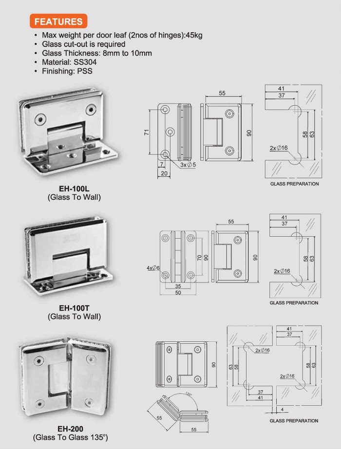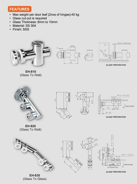 - Glass thickness: 8mm to 10mm