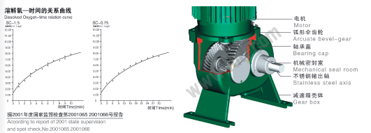 1、Arcuate bevel-gear instead of worm gear is adopted,with high efficiency and saving over 20% electric energy than traditional models. 2、Arcuate bevel-gear is made of chromium-manageanese-tianium with carbontitriding on the surface.Long life span and high rigidity are available. 3、Mechanical seal is available to against oil leak pollution. 4、Protector inside is available to avoid motor bening burnt accidentally. 5、PE float,nylon impeller,stainless steel shaft and frame are available.