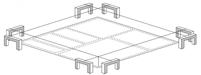 1. AFTER CLEARING AND LEVELING OF THE PLATFORM, THE POSITIONS OF THE EXTERNAL AND INTERNAL WALLS ARE SET-OUT