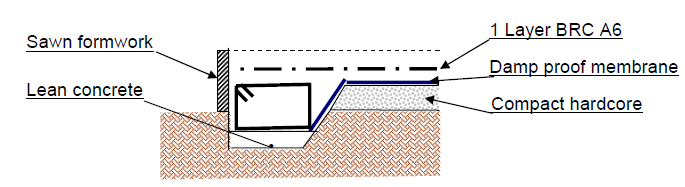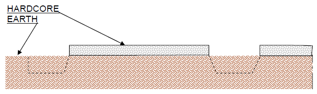 2.  A 100 MM THICK CONSOLIDATED HARDCORE BED IS LAID BETWEEN THE STRIP FOOTING MARKS.