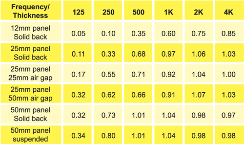The noise absorption co-efficient for Xstex panel, as tested to BS 3638:987: