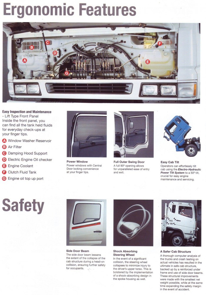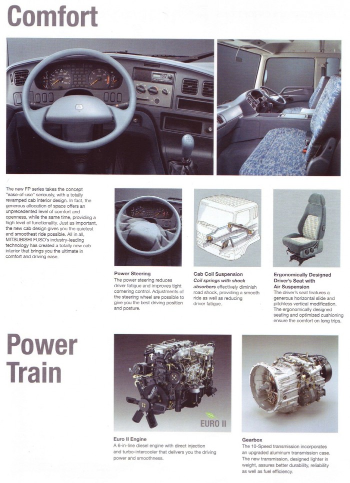 The new FP series takes the concept “ease-of-use” seriously, with a totally revamped cab interior design. In fact, the generous allocation of space offers an unprecedented level of comfort and openness, while the same time, providing a high level of functionality. Just as important, the new cab design gives you the quietest and smoothest ride possible. All in all, MITSUBISHI FUSO’s industry-leading technology has created a totally new cab interior that brings you the ultimate in comfort and driving ease.