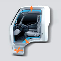 The windshield angle has been optimized, while the front top corners boast a more gradual curve, thereby lowering the Cd (coeffcient of drag) value, and resulting in more effcient aerodynamics.