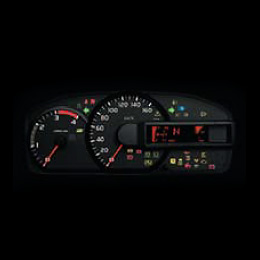 The meter cluster features highly visible readouts of necessary vehicle information. Note: The above illustrations show all warning lamps illuminated, a condition that would not normally be present when driving.