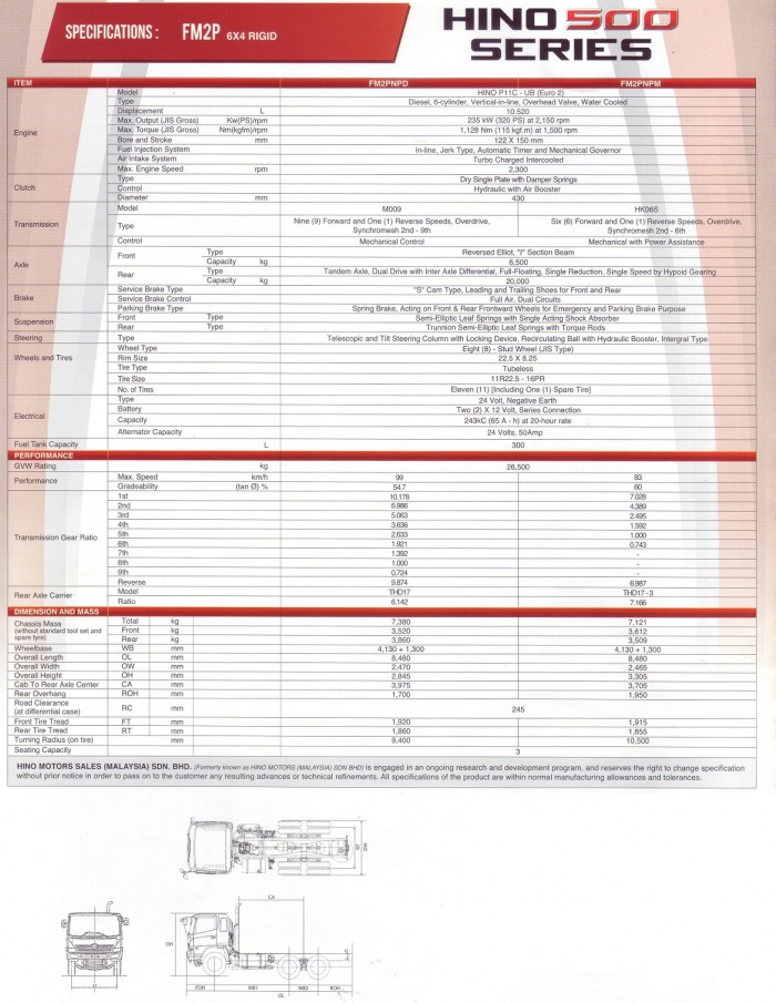 Hino Truck 500 Series 6x4 RIGID - FM2PNPD | PM2PNPM