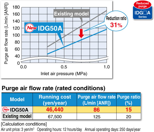 Reduced in purge air flow by up to 39 (L/min [ANR])