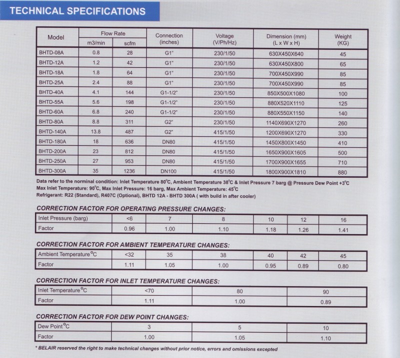 Belair High-Inlet Temperature Refrigerated Air Dryer BHTD Series