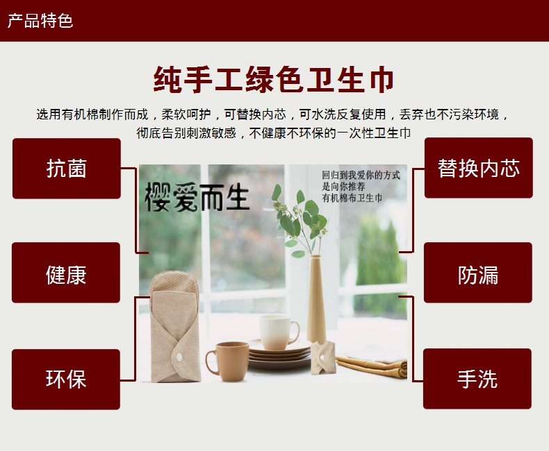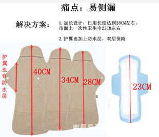 手工可水洗有机彩棉卫生巾无防水层生活护垫180mm 透气舒适抗过敏