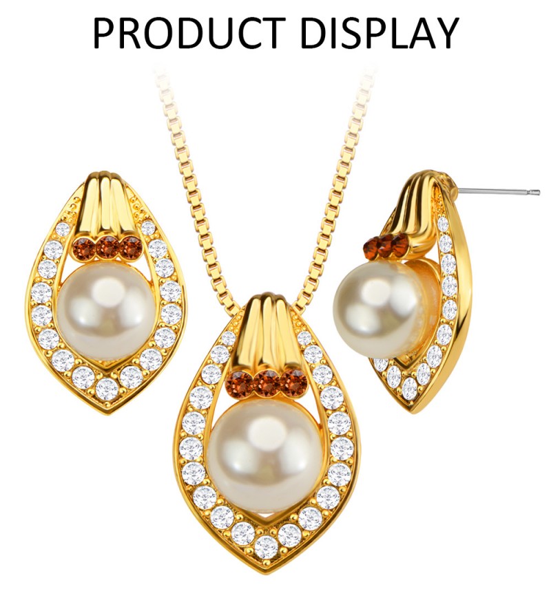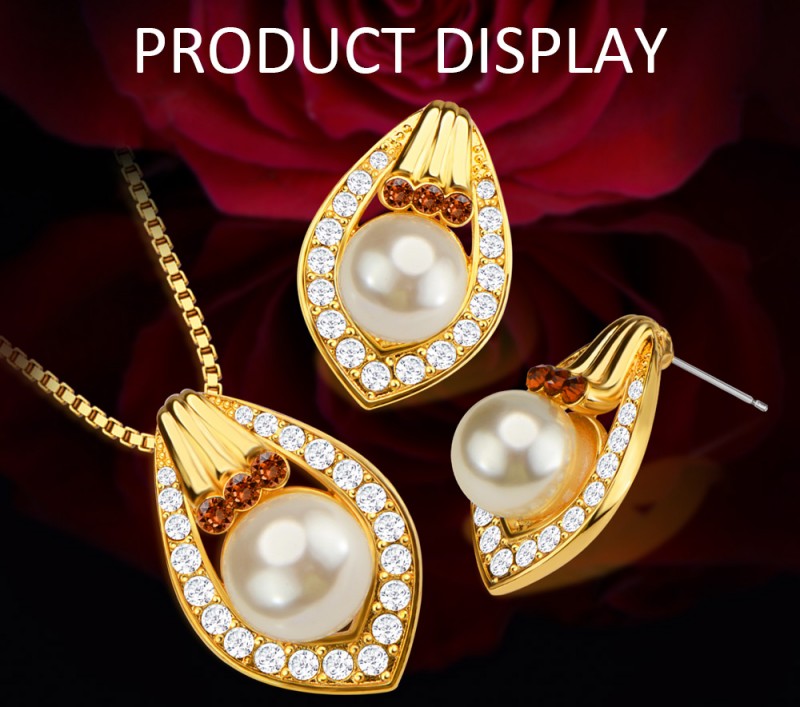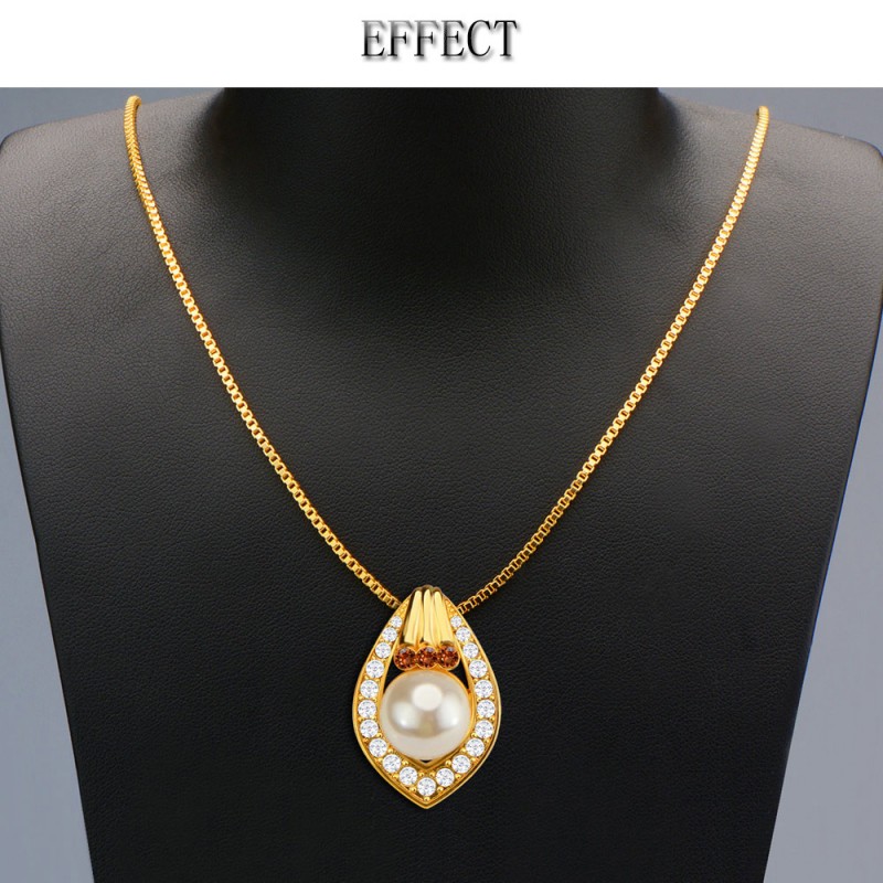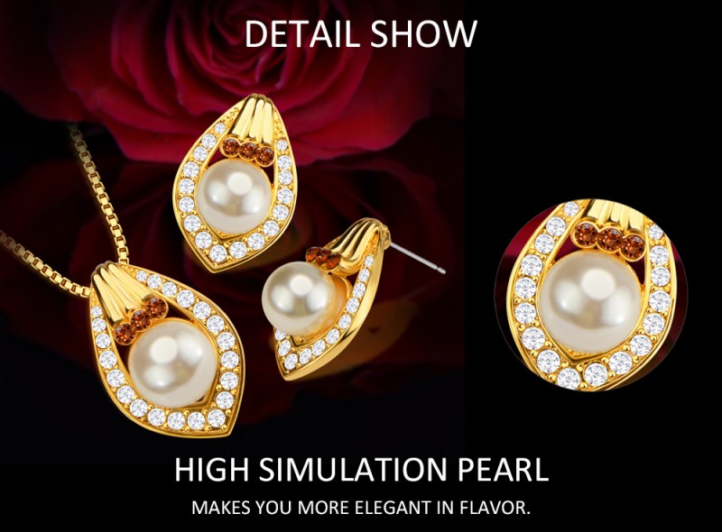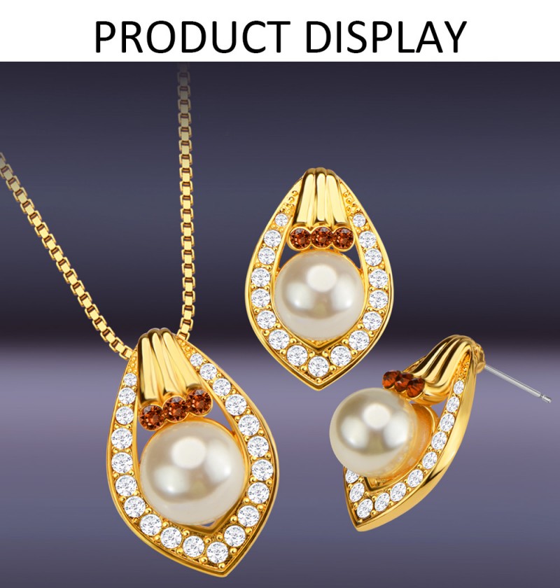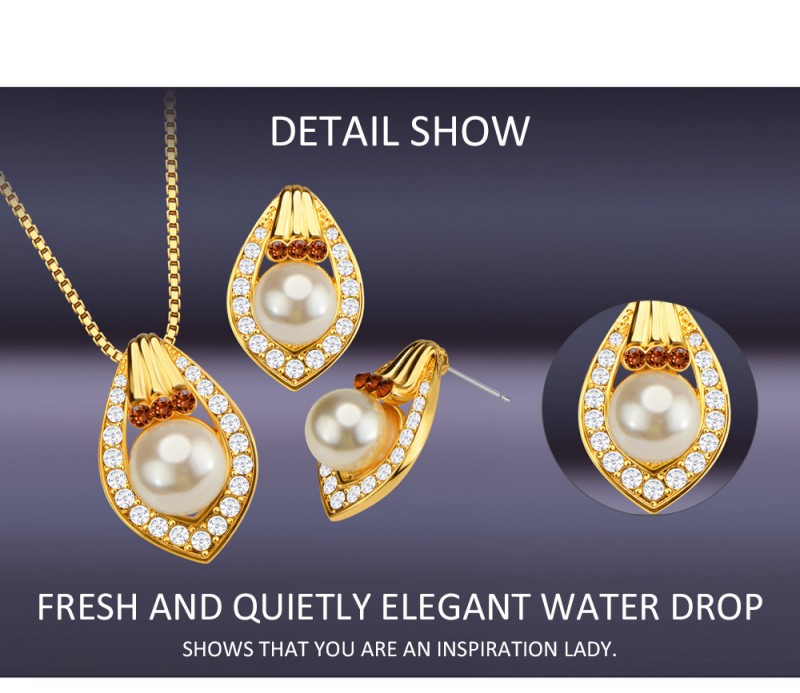 WATER DROP SIMULATION PEARL CRYSTAL AAA CUBIC ZIRCON 18K GOLD PLATED JEWELRY SET NECKLACE EARRINGS FOR LADY
