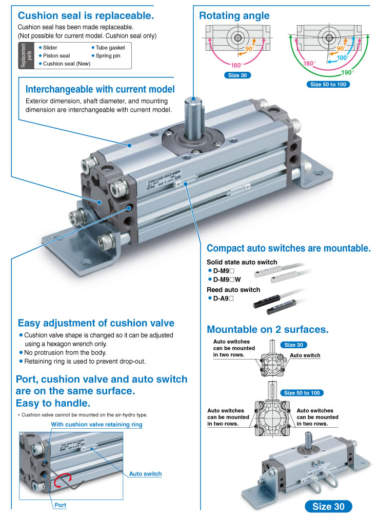 Rotary Actuator with Auto Switch Rack & Pinion Style